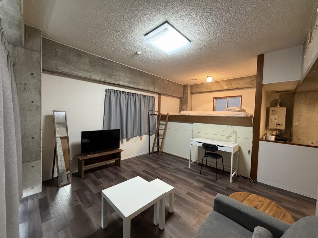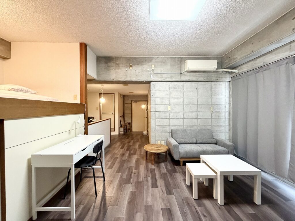 14帖の広々ワンルームにはソファもあり、おしゃれでゆったりとした空間。