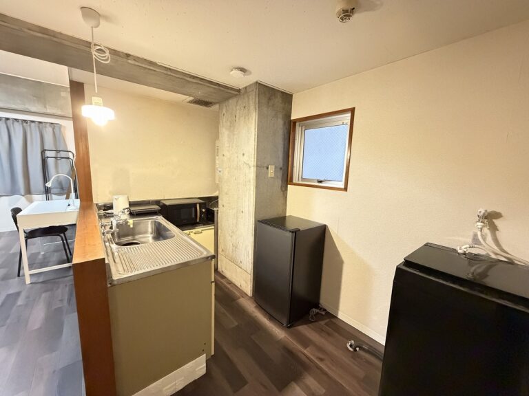 小さな居酒屋や商店街が並ぶ、どこか懐かしい街角にある1K。
