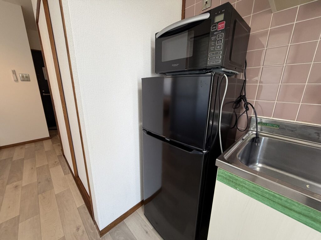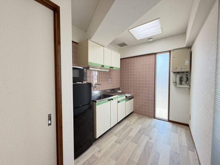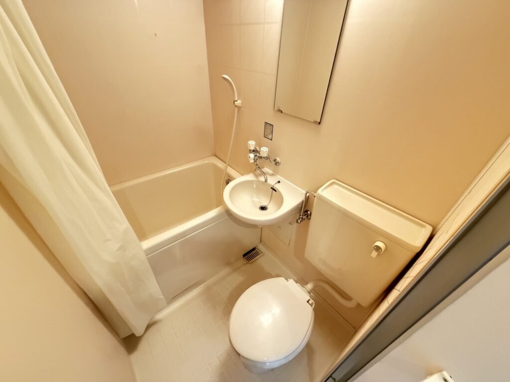 トイレバス別、2口ガスコンロ付きで、コンパクトながら機能的な設備が魅力。